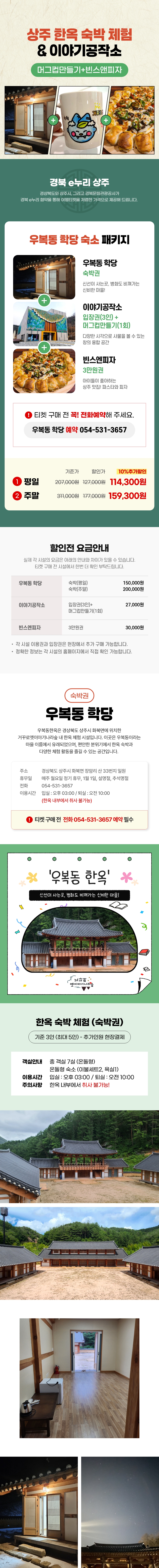 | 1. 구성 상품 | 상주 거꾸로옛이야기나라숲(이야기공작소+우복동 학당)+빈스엔피자 | 2. 부가세 면세여부 | 면세 상품 |