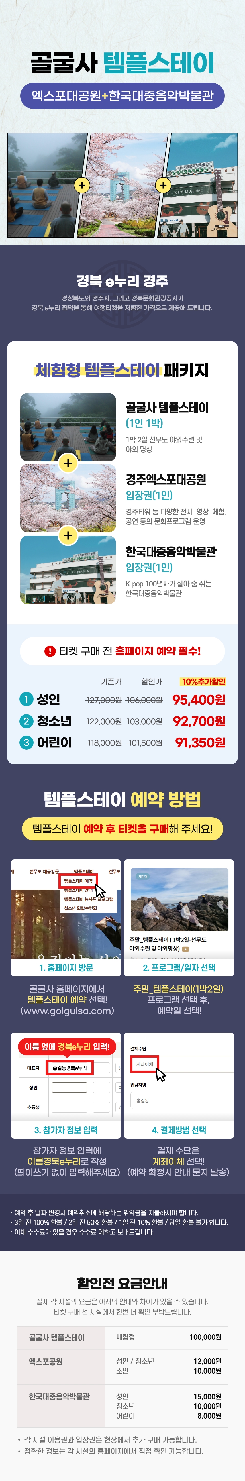 | 1. 구성 상품 | 경주 골굴사+엑스포공원+대중음악박물관 | 2. 부가세 면세여부 | 면세 상품 |